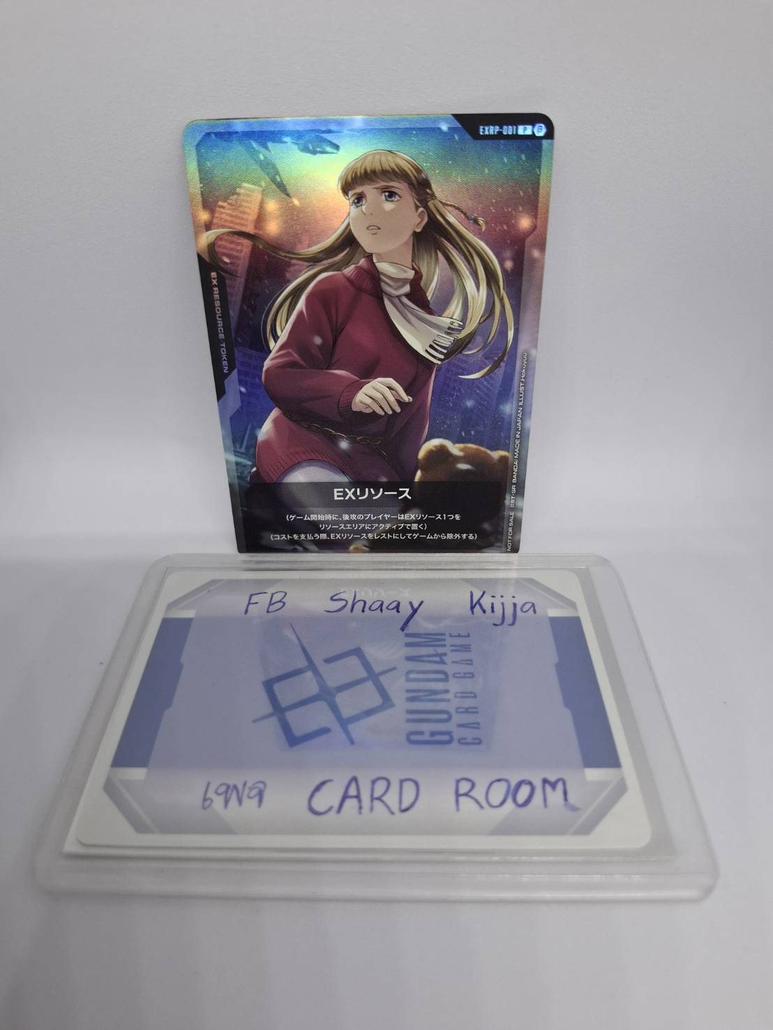 EXRP-001 (P) เป็น EX RESOURCE TOKEN ของ GUNDAM CARD GAME ที่มีภาพเป็น Relena Peacecraft การ์ดใบนี้แจกในงาน BANDAI CARD GAMES Fest 24-25 in Japan (FINAL) ซึ่งจัดขึ้นในปี 2024