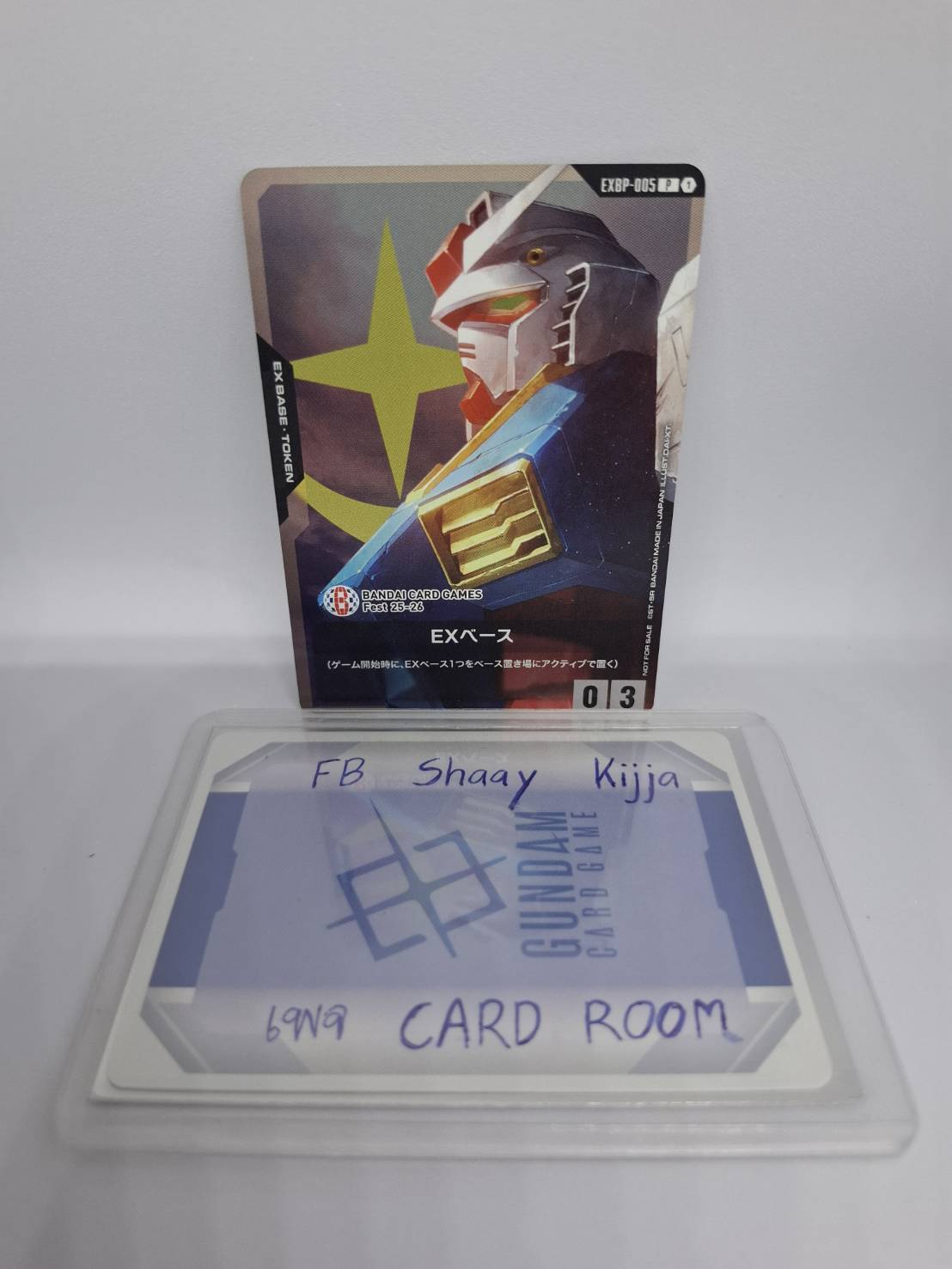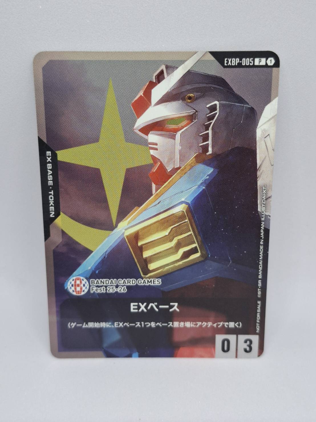 EXBP-005 (P) เป็น Base Token ของ GUNDAM CARD GAME ที่มีภาพเป็น RX-78-2 Gundam ใช้ในการกำหนดฐานของผู้เล่นเมื่อเริ่มเกม และเป็นการ์ดโปรโมชั่นที่หายากและเป็นที่ต้องการของนักสะสม